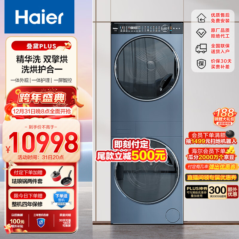 海尔(Haier)叠黛和美洗烘套装 12公斤精华洗羊毛蓝标养护空气洗双擎热泵洗衣机家用烘干机组合 H9 Y12BLD12U1价格:10998.00元!