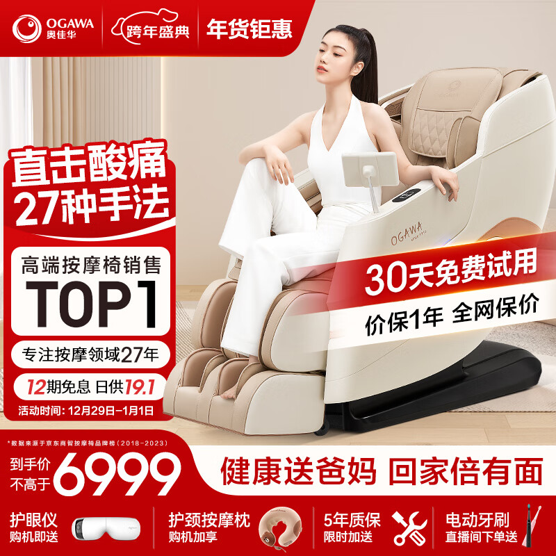奥佳华(OGAWA)按摩椅家用太空舱全身按摩小型小巧沙发多功能全自动电动按摩椅子3D机芯中医养生豪华头等舱M80 光暮杏价格:11999.00元!