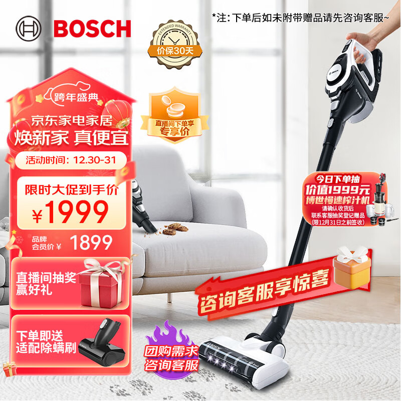 博世(BOSCH)无线手持吸尘器强力大吸力智感应精过滤 S8系列 BBS8214WCN 白色价格:1999.00元!