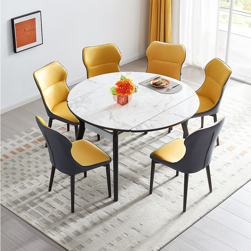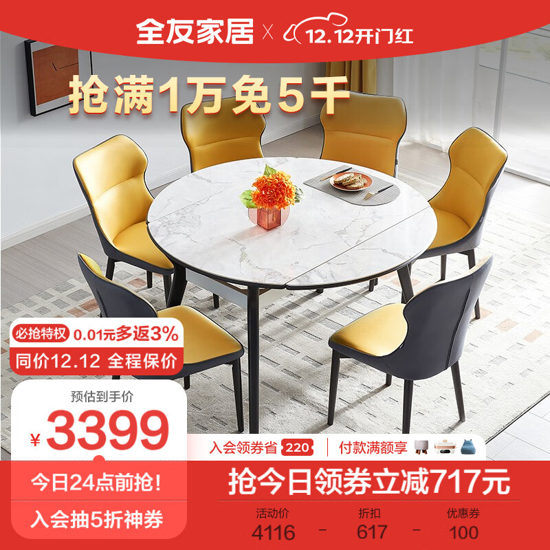 全友家居 现代轻奢岩板餐桌椅餐厅家具可方可圆伸缩折叠餐桌DW1059价格:4116.47元!
