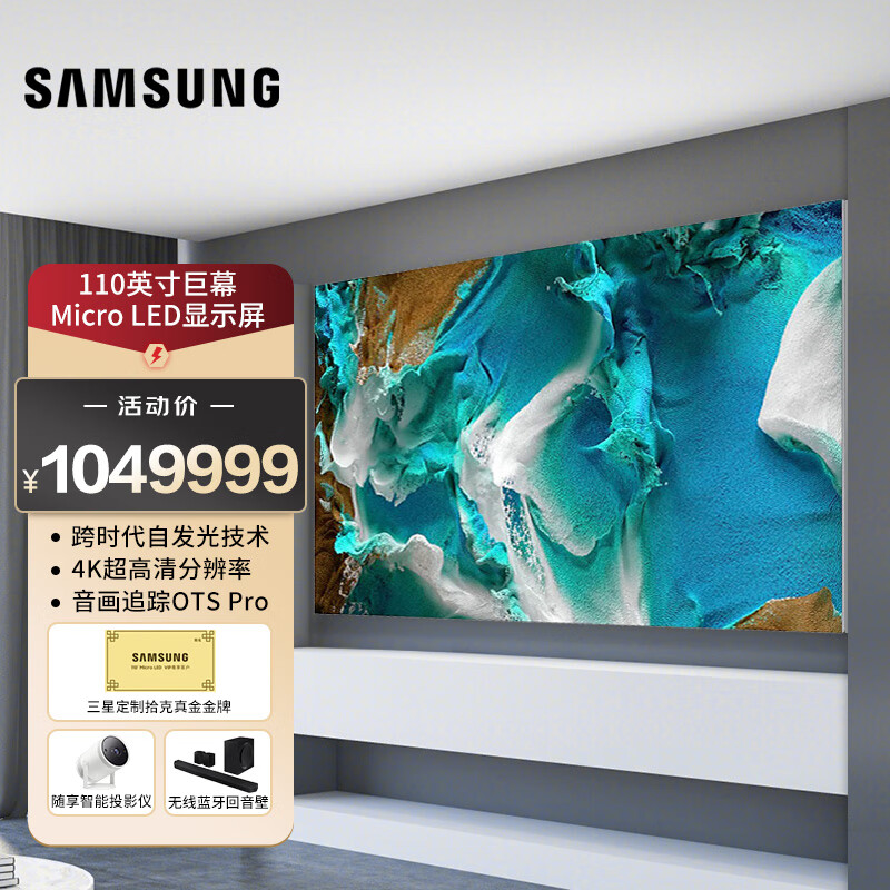 三星(SAMSUNG)110英寸 Micro LED自发光技术 大屏无边框智能显示屏 MNA110MS1ACXXZ 咨询客服享专属权益价格:1049999.00元!