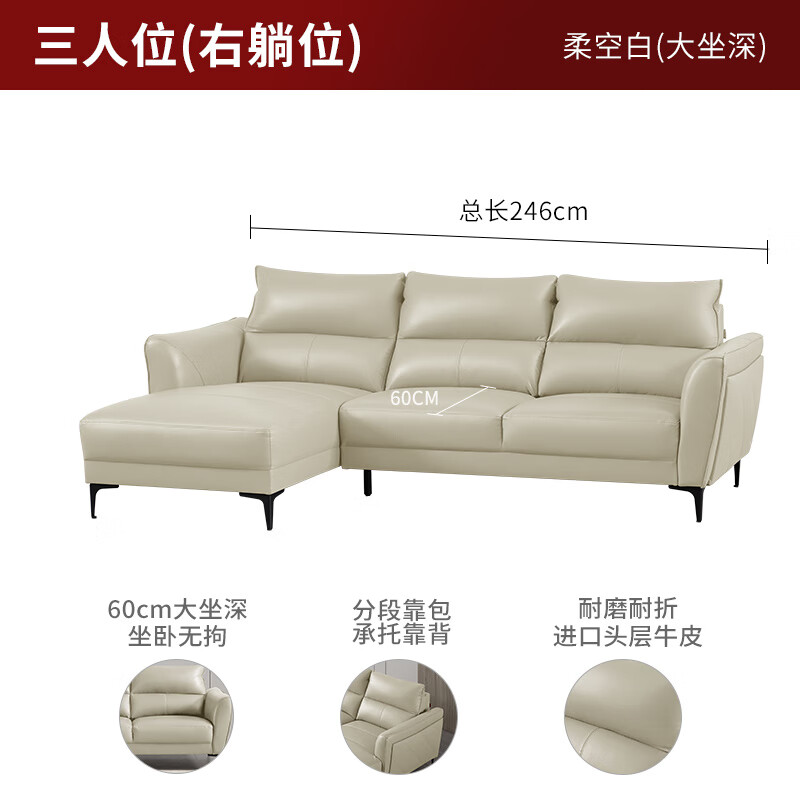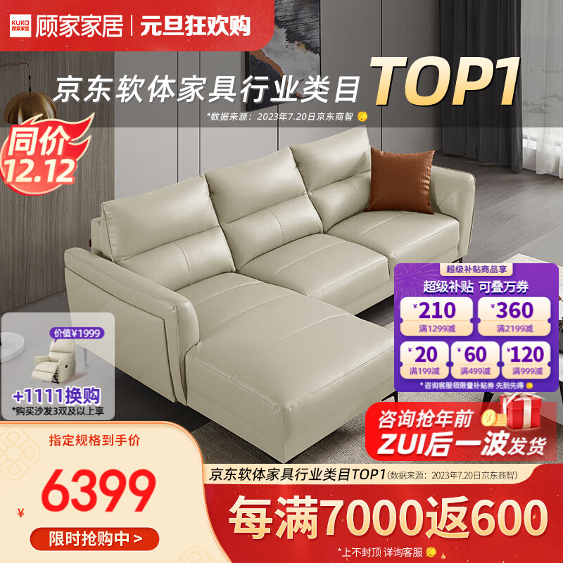 顾家家居(KUKA)皮沙发现代轻奢沙发客厅沙发1107【柔】三人位右躺位大坐深价格:6399.00元!