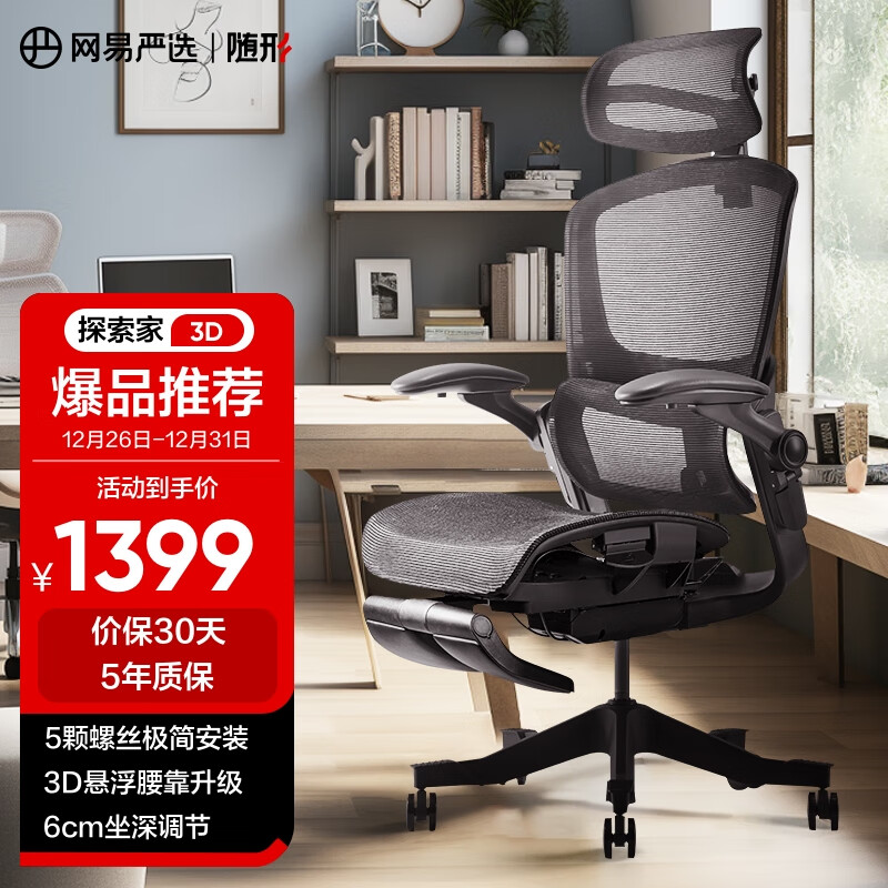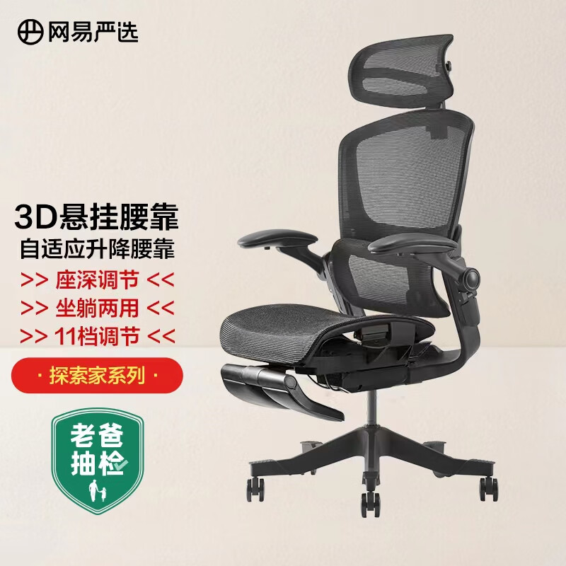 网易严选探索家经典款有搁脚 人体工学电脑椅办公电竞老板会议学习椅凳子价格:1899.00元!