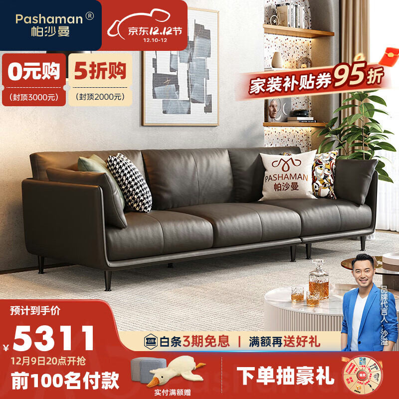 帕沙曼(pashaman)真皮沙发头层牛皮小户型客厅现代简约直排三人位乳胶3.2米7109价格:6809.00元!