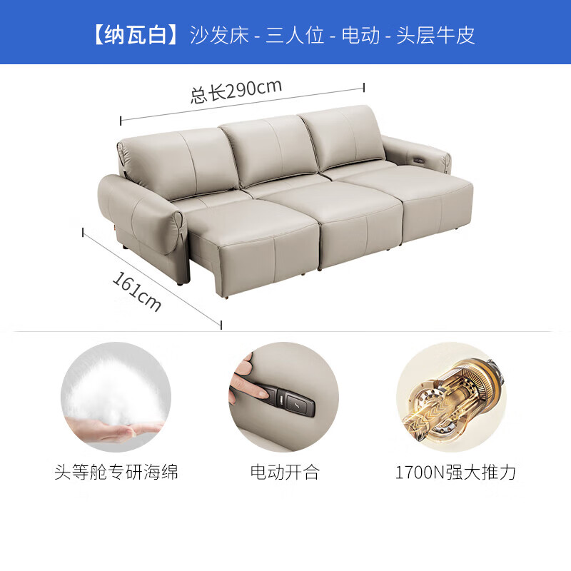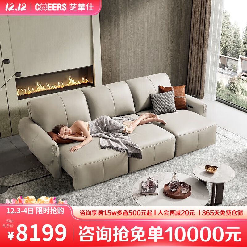 芝华仕头等舱真皮沙发床意式极简电动功能客厅家具 40279 三人位纳瓦白价格:8199.00元!