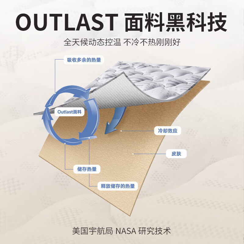 金可儿(Kingkoil)床垫分区独袋弹簧席梦思NASA动态控温面料偏硬弦月7床垫1.8x2米价格:6999.00元!