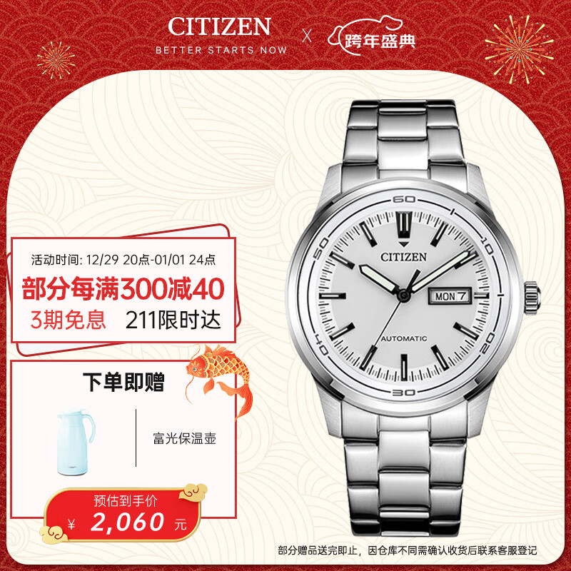 西铁城(CITIZEN)手表男日韩表自动机械白盘日显钢带商务学生送礼物NH8400-87A价格:2070.00元!