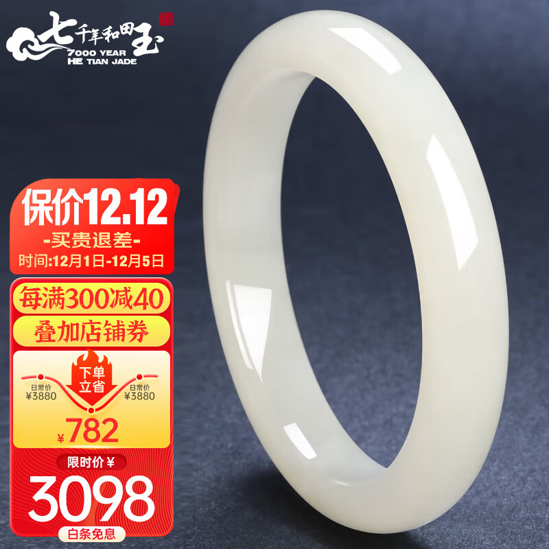 7000年和田玉手镯女款玉镯子玉石玉器57-58圈口价格:3778.00元!