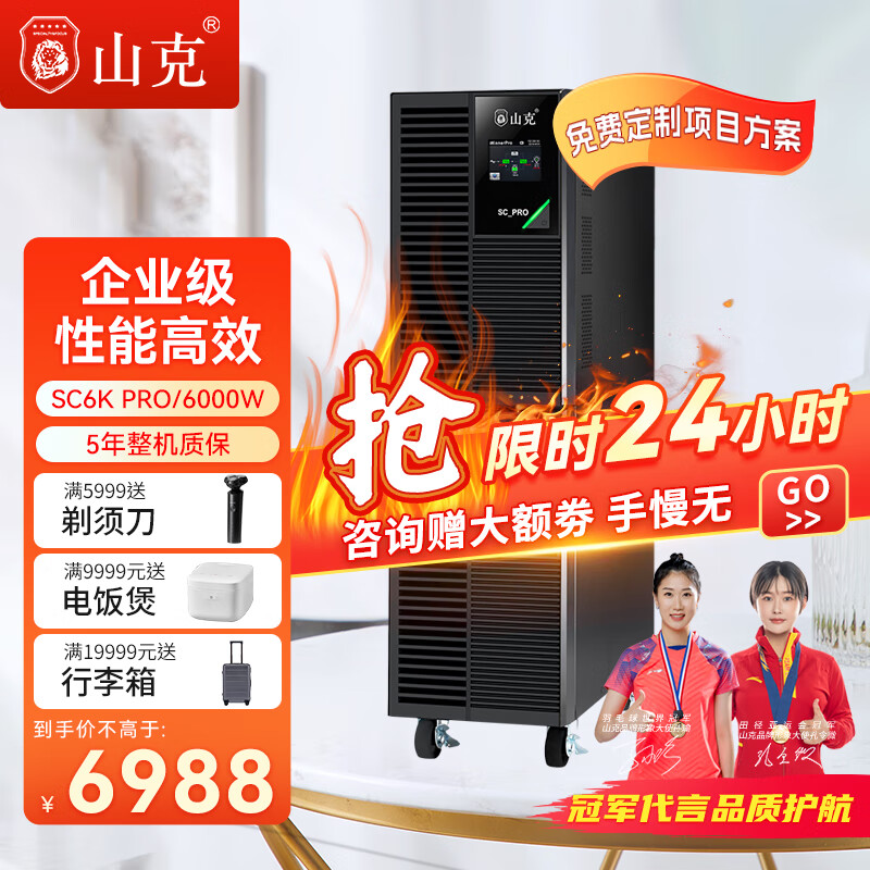 山克 SC6K PRO在线式ups不间断电源6KVA/6000W内置电池服务器机房电脑备用UPS电源价格:6988.00元!