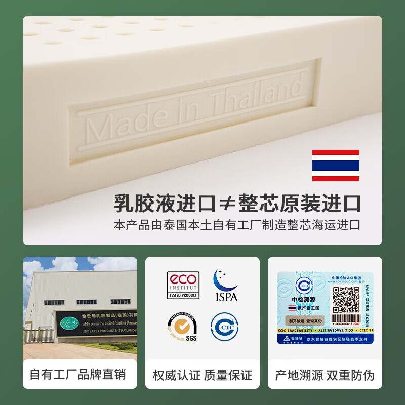 说真的THAIAO泰妙,总体感觉还满意的,这个购物整理感觉很好,物流速度快,乳胶反复检查确定是正品,有证书,有钢印,手感舒适,没有异味,5厘米,正好合适,睡一夜,非常舒适,还额外送了两个乳胶枕头