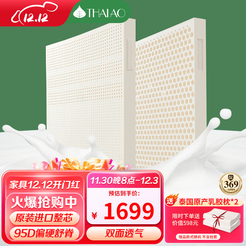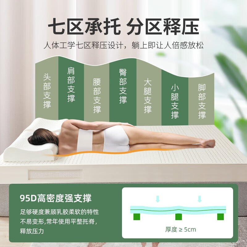THAIAO床垫 泰国原产进口天然乳胶床垫双人床垫95D 200*150*10cm泰妙价格:2099.00元!