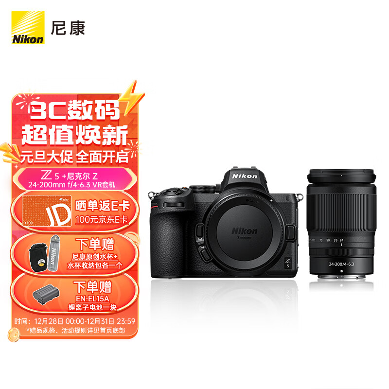 尼康(Nikon)Z5全画幅微单相机 数码相机 微单套机 ( Z 24-200mm f/4-6.3 VR 微单镜头)Vlog相机价格:14599.00元!