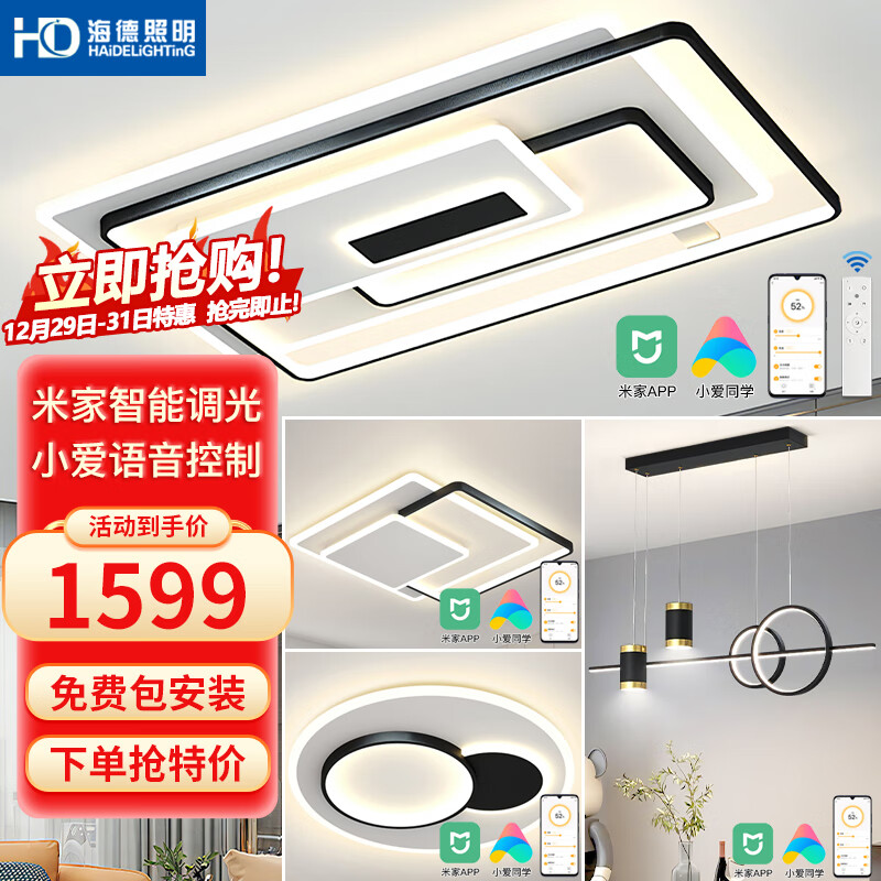 HD米家智能AI语音吸顶灯 led大客厅卧室全屋灯饰 包安装灯具套餐D价格:1999.00元!