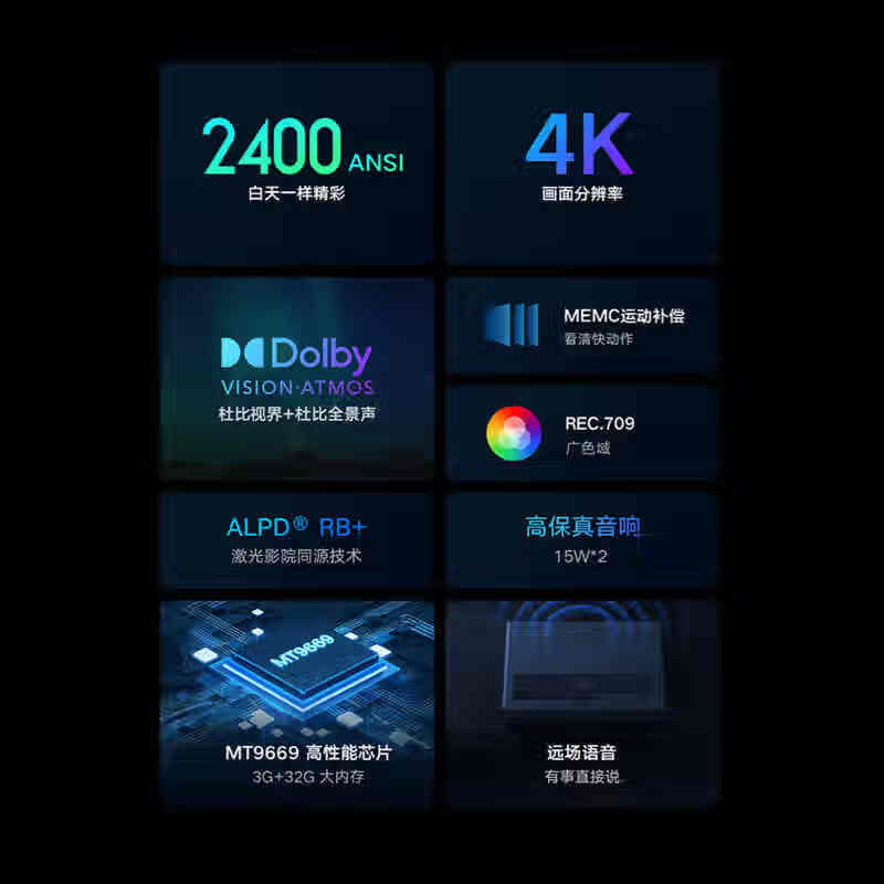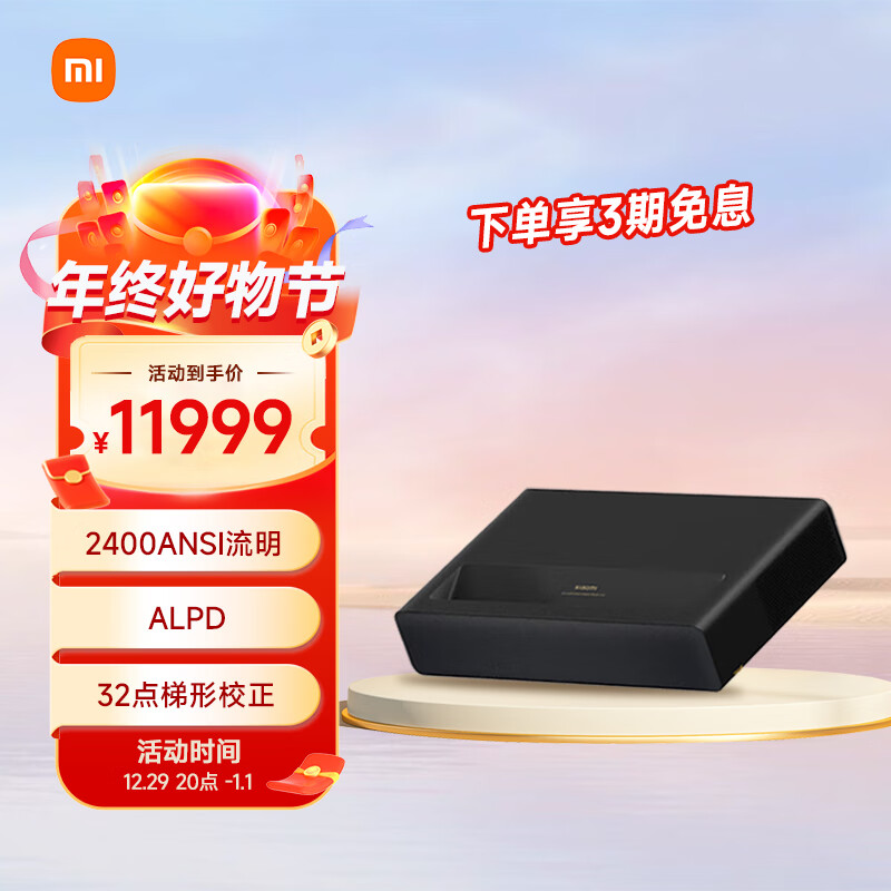 小米激光影院2 4K 100英寸 2400ANSI流明 杜比全景声 ALPD 32点梯形校正 MEMC运动补偿价格:11999.00元!