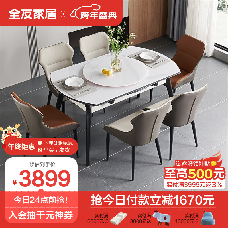 全友家居?轻奢钢化玻璃折叠餐桌椅组合可伸缩家用桌子饭桌家具DW1059价格:5568.71元!