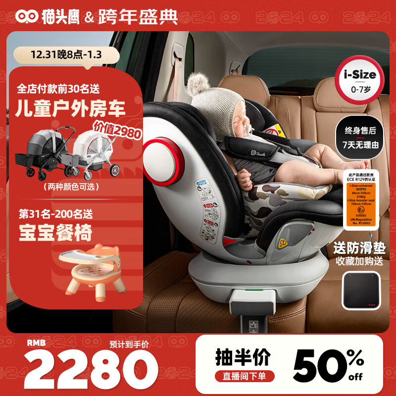 猫头鹰(SAVILE)儿童座椅0-4-7岁360度旋转ISOFIX硬接口M178A妙转PRO深空黑价格:2280.00元!