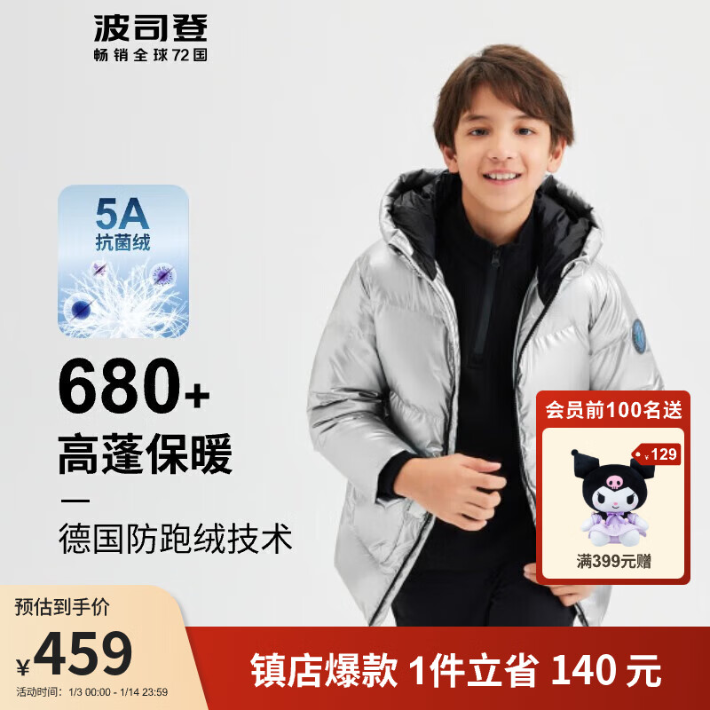 波司登2023秋冬男女童羽绒服中长款连帽保暖防风百搭休闲儿童外套T20145940E价格:599.00元!