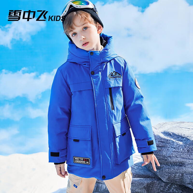 雪中飞【蓄热】儿童羽绒服冬男女中大童中长款工装羽绒服蓝色130cm价格:599.00元!