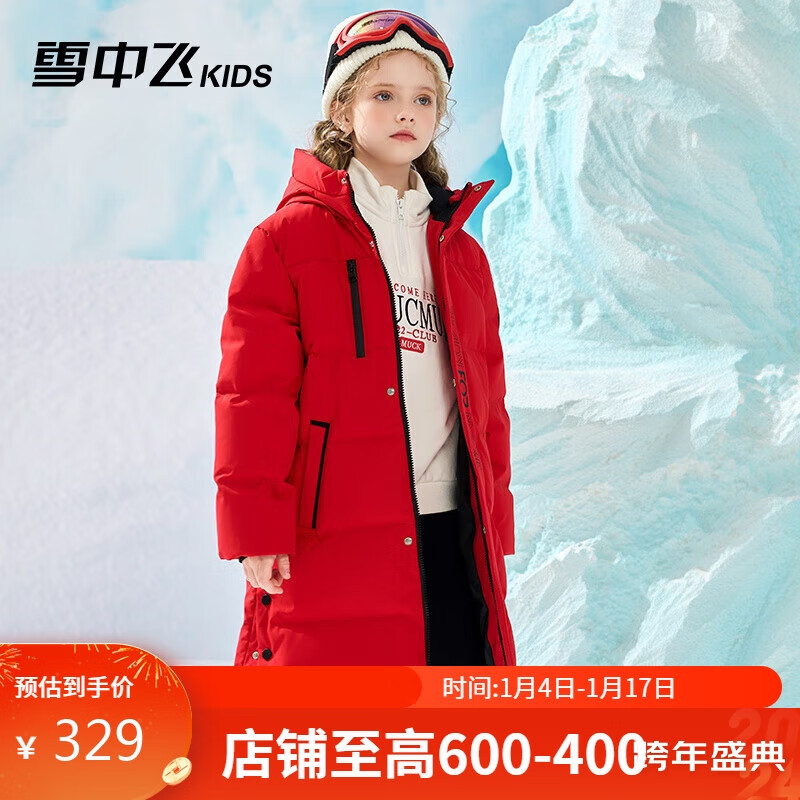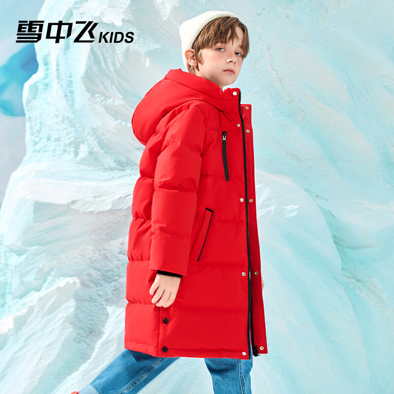 雪中飞【蓄热】童装儿童羽绒服男童女童纯色中大童拼接羽绒服红色130cm价格:729.00元!