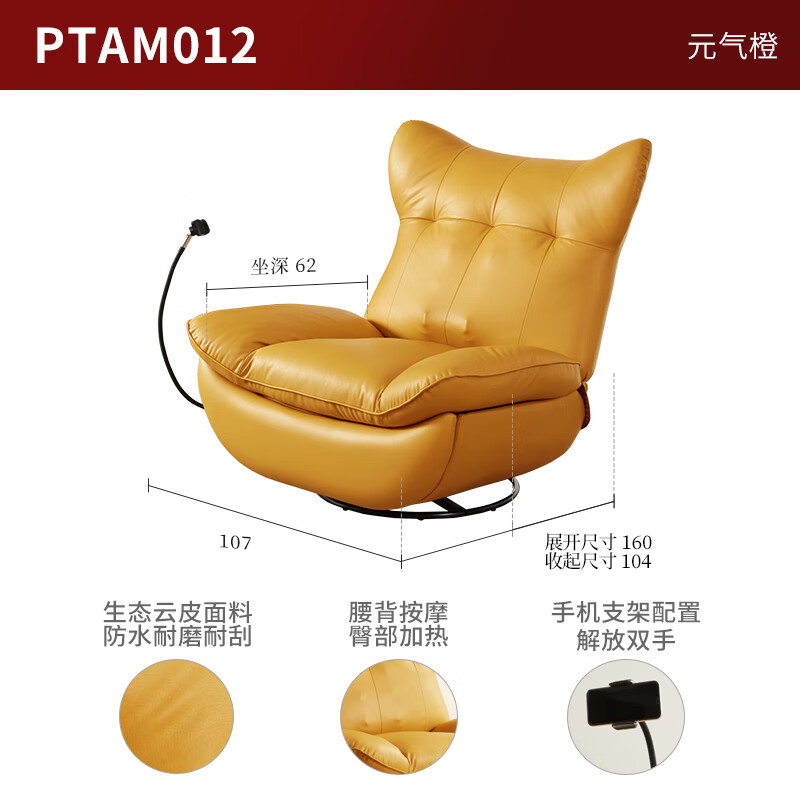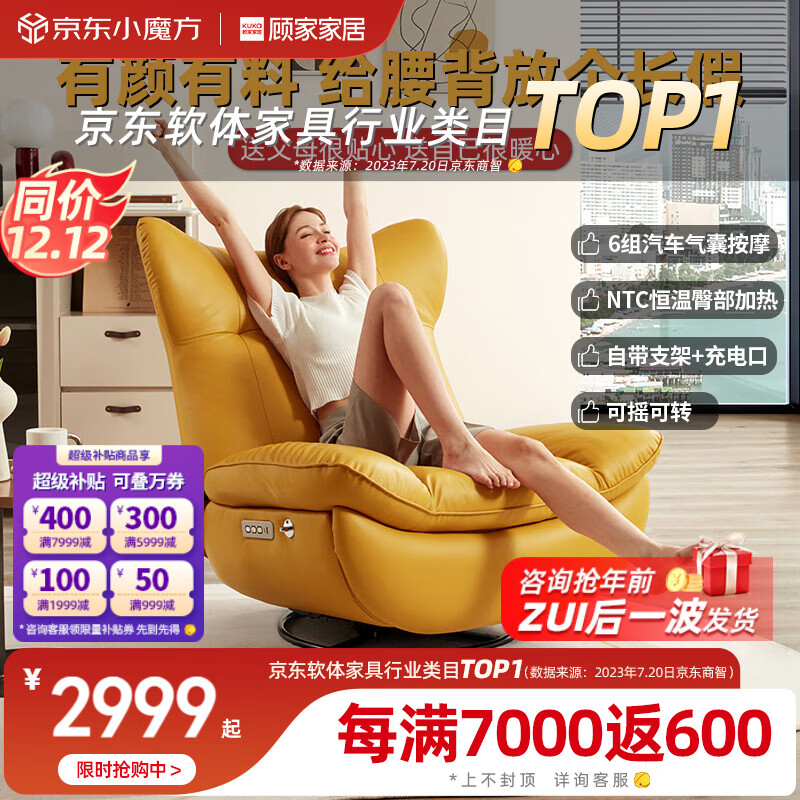 顾家家居(KUKA)单人沙发椅可摇可转带USB生态云皮按摩椅PTAM012按摩沙发高端送礼价格:2999.00元!
