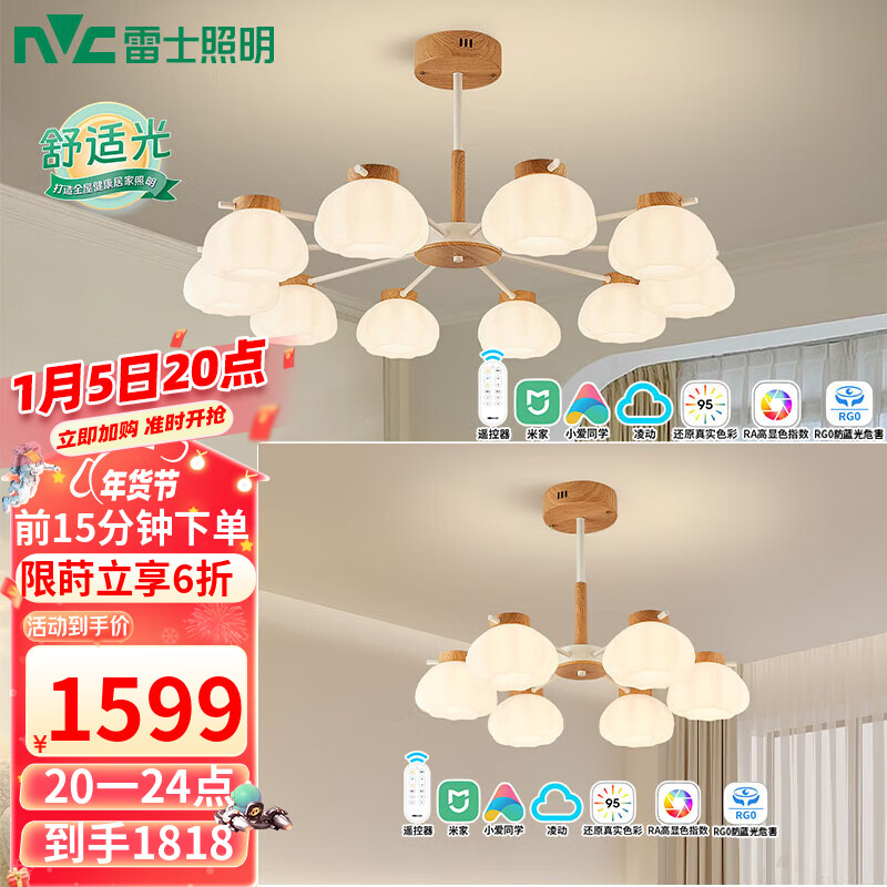 雷士(NVC)奶油风法式泡芙客厅餐厅吊灯智能高显10头一室一厅WHDD100F/G-05价格:3029.00元!