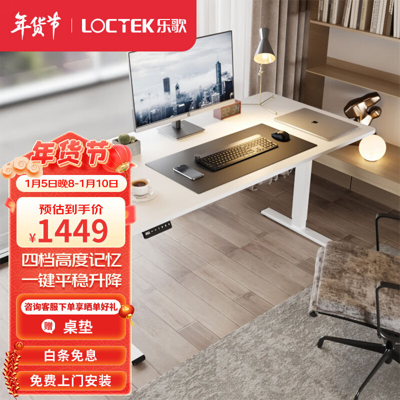 乐歌电动升降电脑桌站立式台式书桌家用写字桌青春派E2雅白色1.6m桌价格:1699.00元!