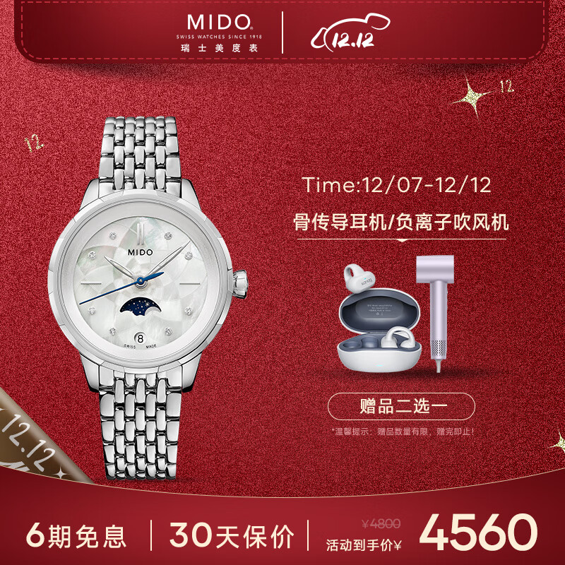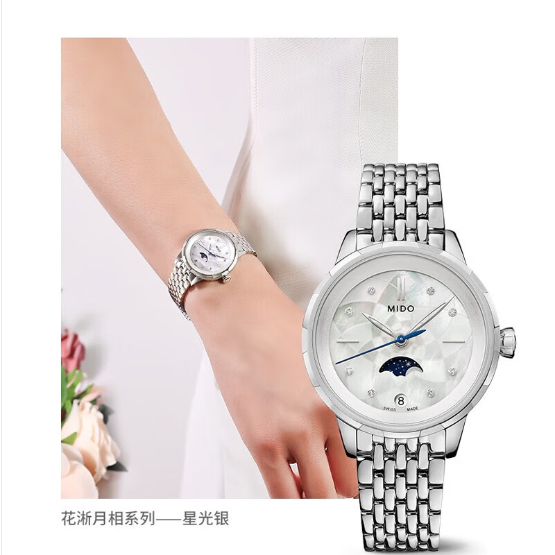 美度(MIDO)瑞士手表 花淅系列 月相款 月光银 石英女表 M043.023.11.106.00价格:4800.00元!
