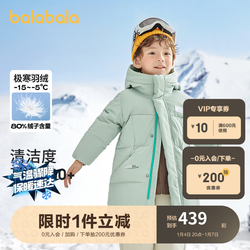 巴拉巴拉儿童羽绒服大童2023款冬季保暖男女童小童长款连帽外套极寒价格:539.00元!
