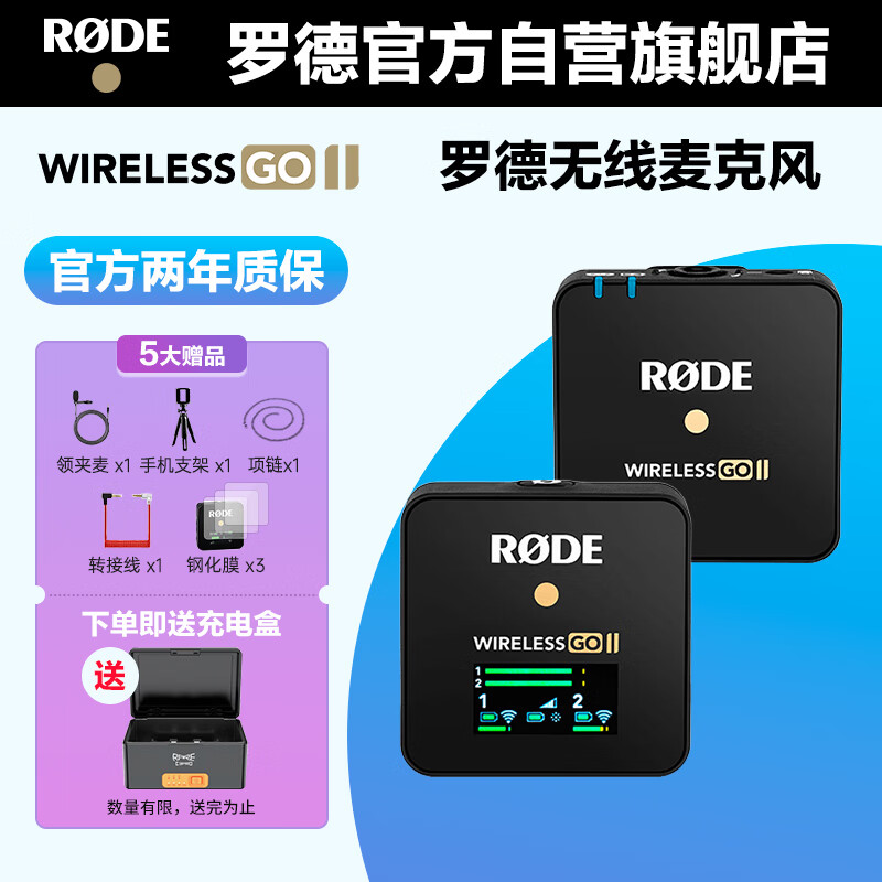 RODE 罗德Wireless Go II Single无线领夹麦克风一拖一直播录音采访视频VLOG相机手机专业收音话筒(标配)价格:1795.00元!