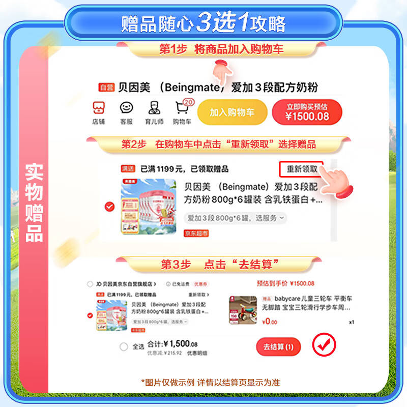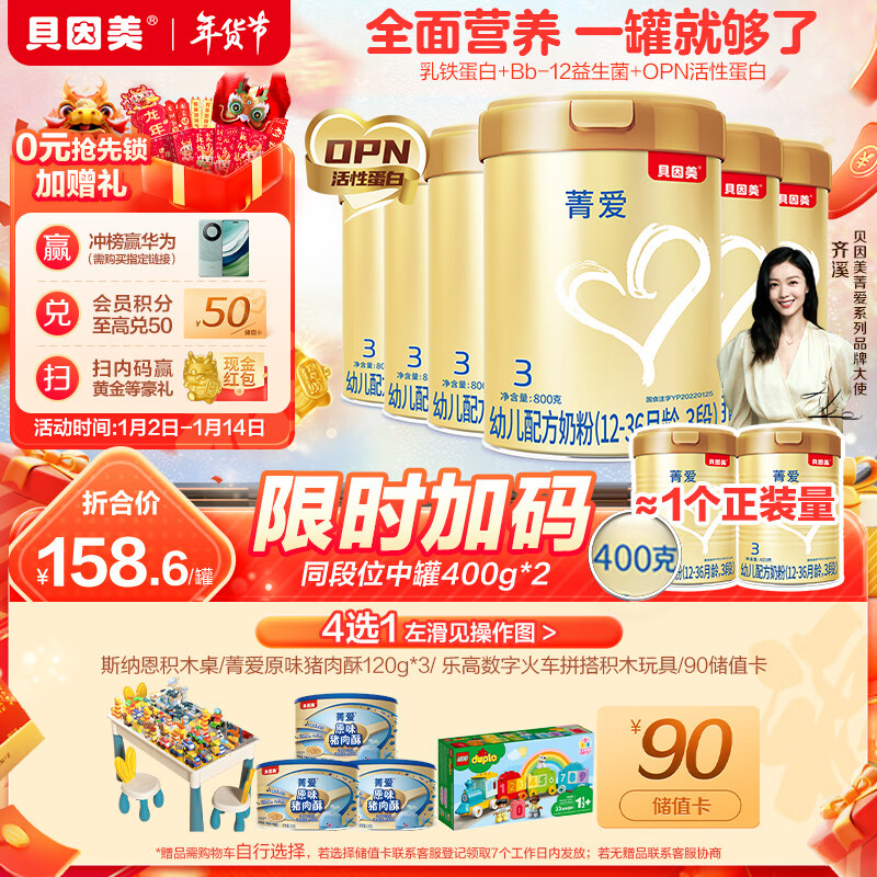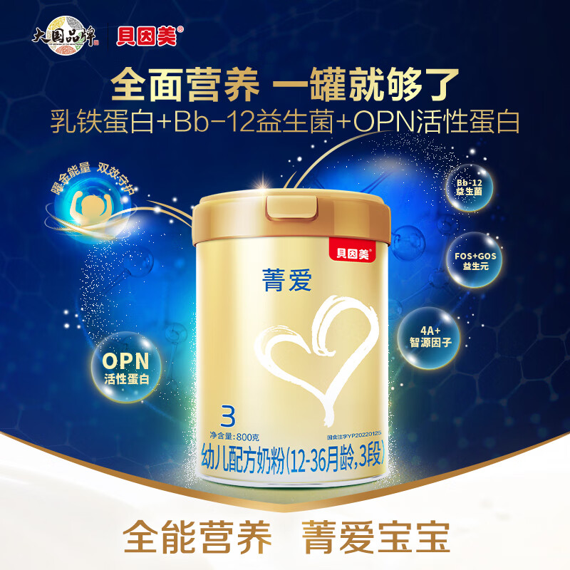 贝因美菁爱3段幼儿配方奶粉800g*6多罐骨骼发育消化吸收含益生菌+DHA价格:1260.00元!