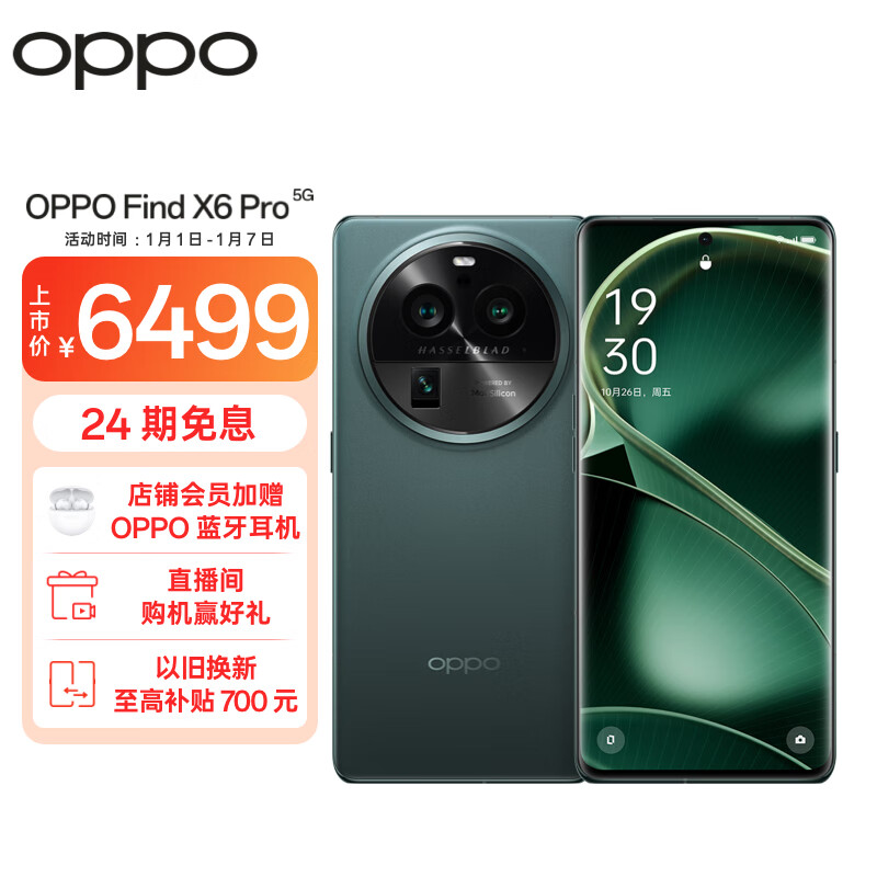 OPPO Find X6 Pro 16GB+256GB 飞泉绿 超光影三主摄 哈苏影像 100W闪充 第二代骁龙8旗舰芯片 5G拍照手机价格:6499.00元!