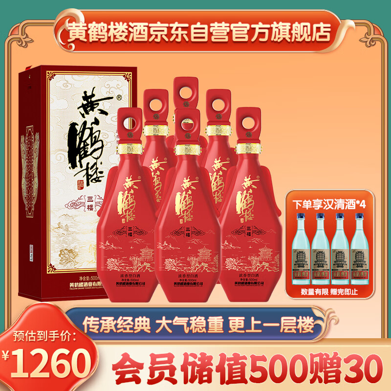 黄鹤楼酒 更上层楼 三楼 浓香型白酒 52度 500ml*6瓶 整箱装价格:1260.00元!