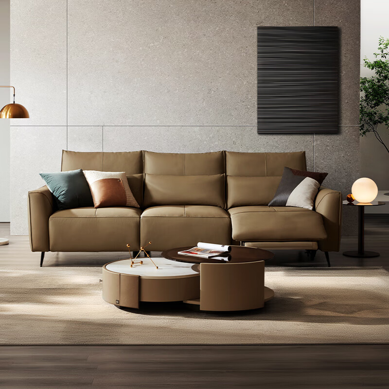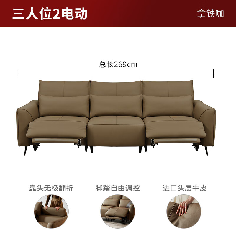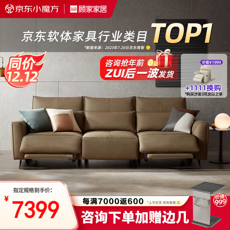顾家家居(KUKA)大黑牛功能沙发 客厅真皮沙发零靠墙6135【拿铁咖】3人位2电动价格:7399.00元!