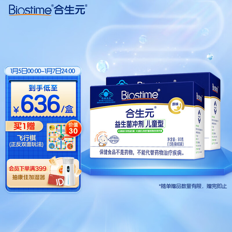 合生元(BIOSTIME)儿童益生菌冲剂(益生元)原味60袋装*2 升级款(宝宝可用 活性益生菌)价格:929.00元!