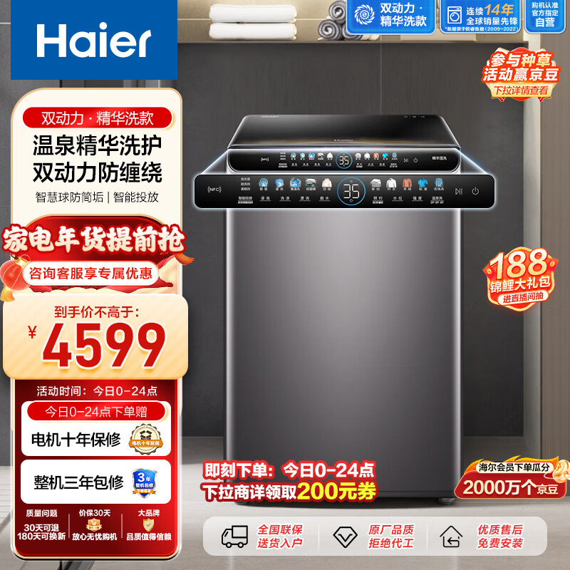 海尔(Haier)波轮洗衣机全自动 10公斤 内衣除菌 脱水机 精华洗更洁净 双动力防缠绕 以旧换新MS100-BRM286U1价格:4799.00元!