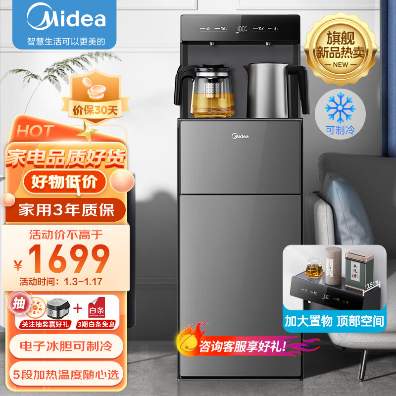 美的(Midea)茶吧机家用高端智能客厅办公室下置式一体柜水吧饮水机 冰热款YCD-2362(可制冷)价格:1699.00元!
