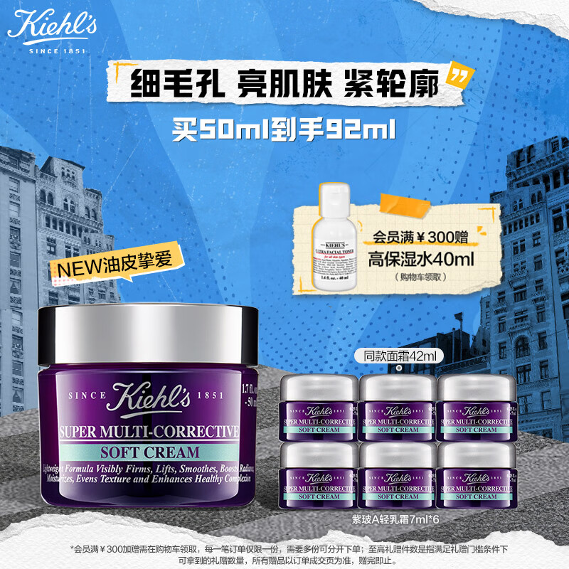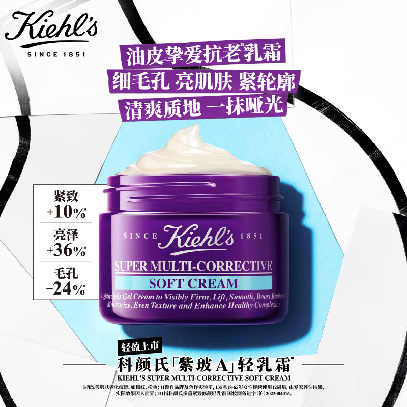 科颜氏(Kiehl's)「紫玻A」轻乳霜50ML紧致修颜霜护肤品礼盒生日礼物女新年价格:690.00元!