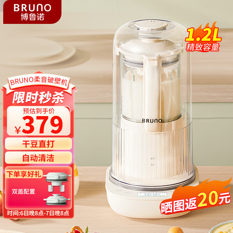 BRUNO柔音破壁机1.2L家用豆浆机小型容量加热免洗全自动榨汁机搅拌机静音辅食机早餐机料理机象牙白价格:399.00元!