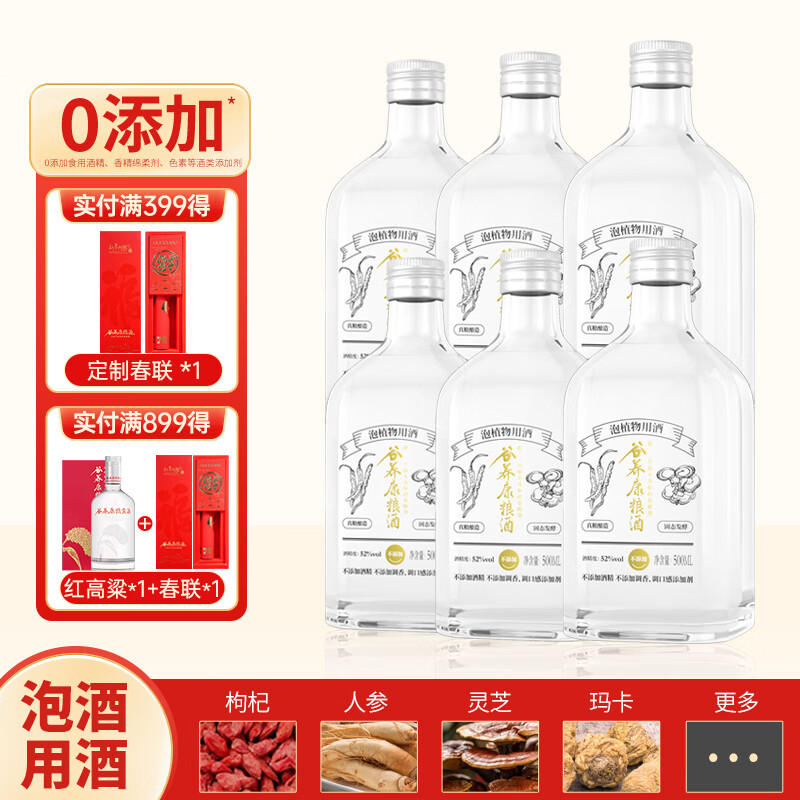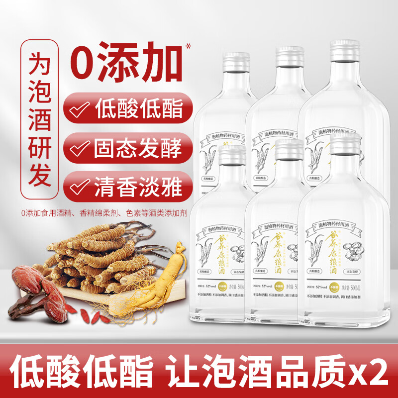 谷养康粮食酒 泡酒用酒瓶装清香高粱酒白酒泡果酒泡药酒纯粮酒 52度 500mL 6瓶 【质选】适合植物类价格:1247.00元!