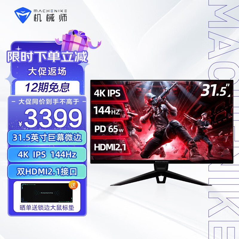 机械师 天幕 31.5英寸 4K IPS 144Hz HDR 400nit 1ms电脑游戏电竞显示器10Bit双HDMI2.1 Type-C65W MK32UGSC2价格:3599.00元!