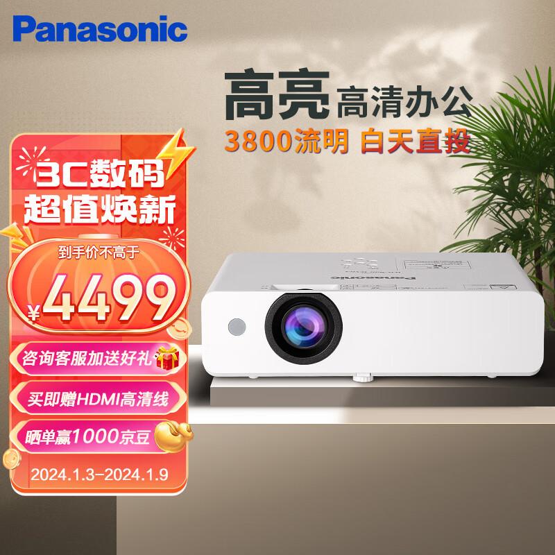 松下(Panasonic)PT-WW3601 投影仪办公室培训会议专用 投影机家用家庭影院电视卧室(高清宽屏 3800流明 )价格:4799.00元!
