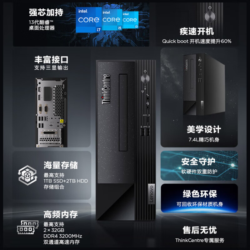 联想台式机 ThinkCentre neo S500 商用办公台式机电脑主机(13代i7-13700 32G 1TSSD+2T Wi-Fi)定制价格:6799.00元!