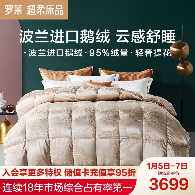 罗莱家纺 尊·御臻享 95%白鹅绒波兰进口羽绒被冬被子1200g 220*250cm价格:5199.00元!