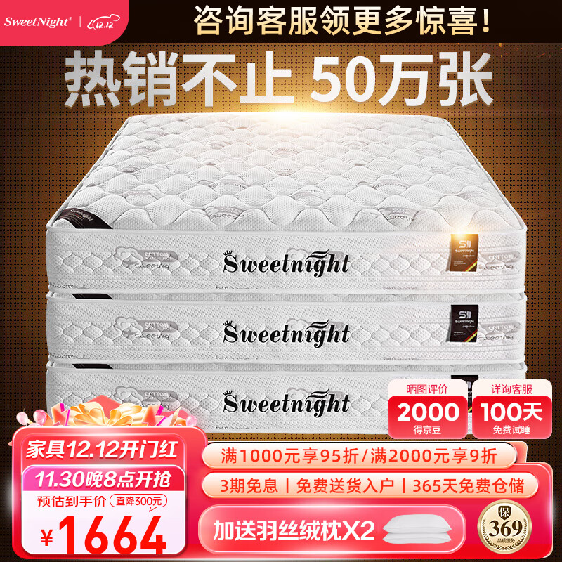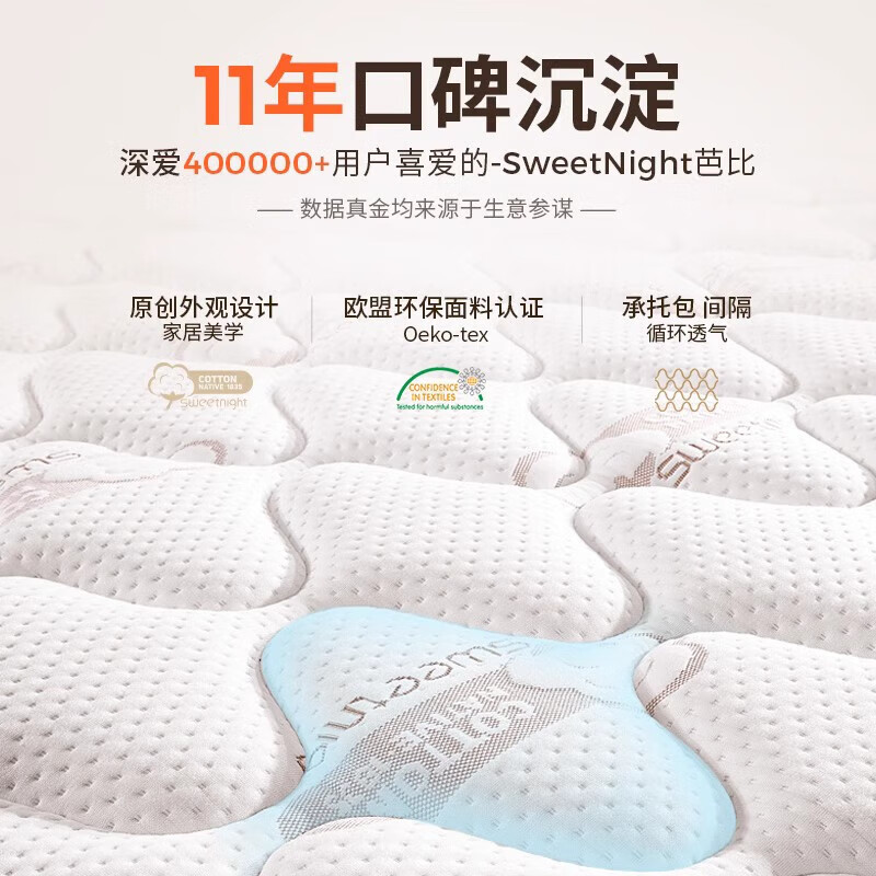 Sweetnight床垫乳胶独立弹簧双人软垫椰棕榈硬垫定制厚 芭比C款1.8*2m价格:2160.00元!