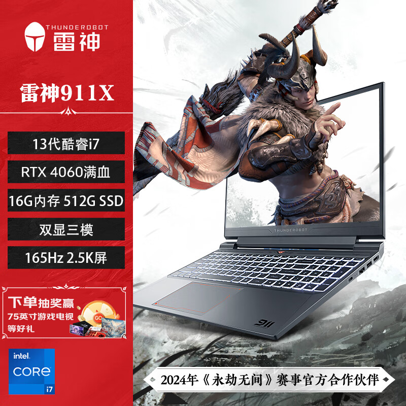 雷神911X降龙 2023 15.6英寸游戏本 笔记本电脑(13代酷睿i7-13620H 16G 512G RTX4060满血 165Hz 2.5K屏)价格:6349.00元!
