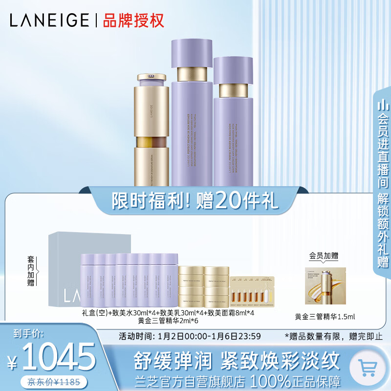 兰芝致美护肤套装精华水150ml+精华乳130ml+精华20ml 护肤品 新年礼物价格:1100.00元!