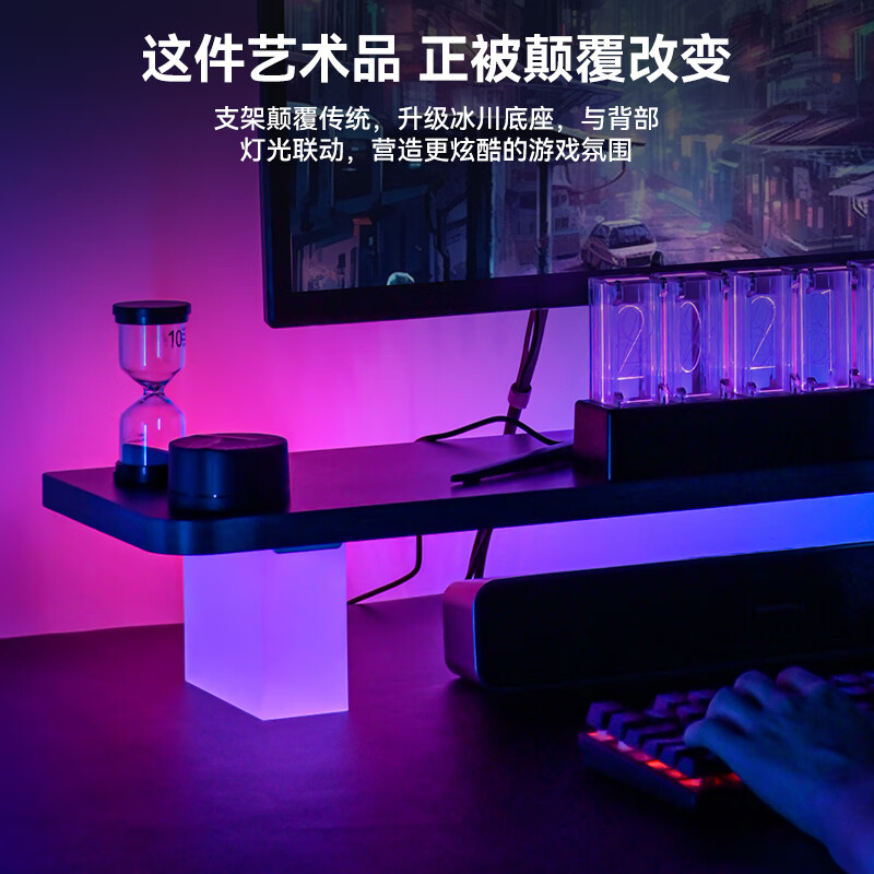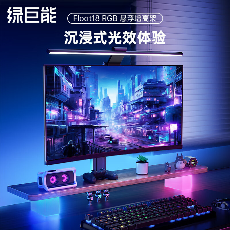 绿巨能(llano)显示器增高架电脑支架桌面置物架悬浮桌搭炫彩RGB灯光遥控调节笔记本收纳架电竞氛围灯胡桃色价格:399.00元!