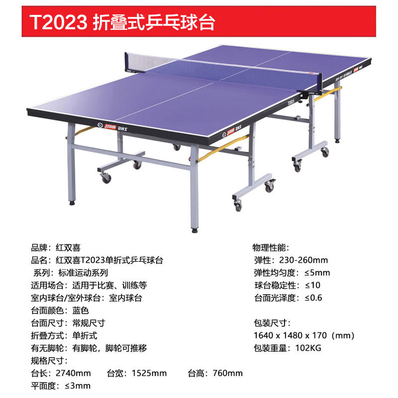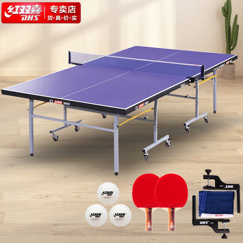 红双喜DHS乒乓球桌折叠滚轮乒乓球台T2023附网架乒拍乒球价格:2999.00元!
