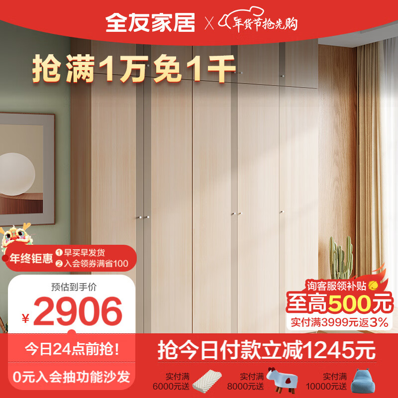 全友家居 衣柜北欧简约平开门衣柜组合106305 二门衣柜+二门衣柜顶柜+三门衣柜+三门衣柜顶柜价格:4151.43元!