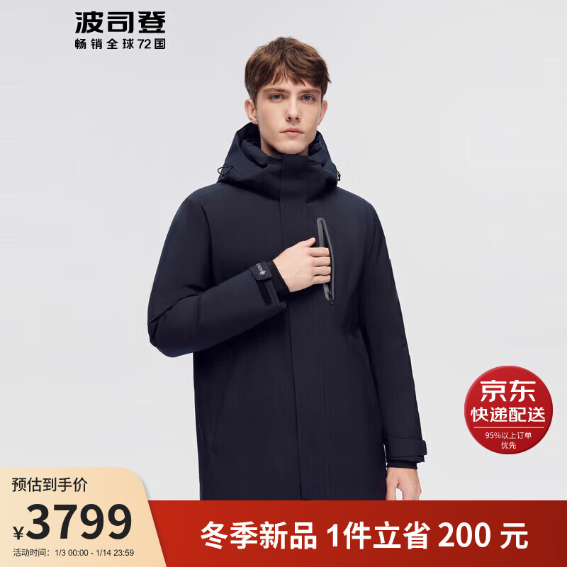 波司登2023冬季鹅绒羽绒服男90绒加厚中款可脱卸帽保暖外套B30142213价格:3999.00元!